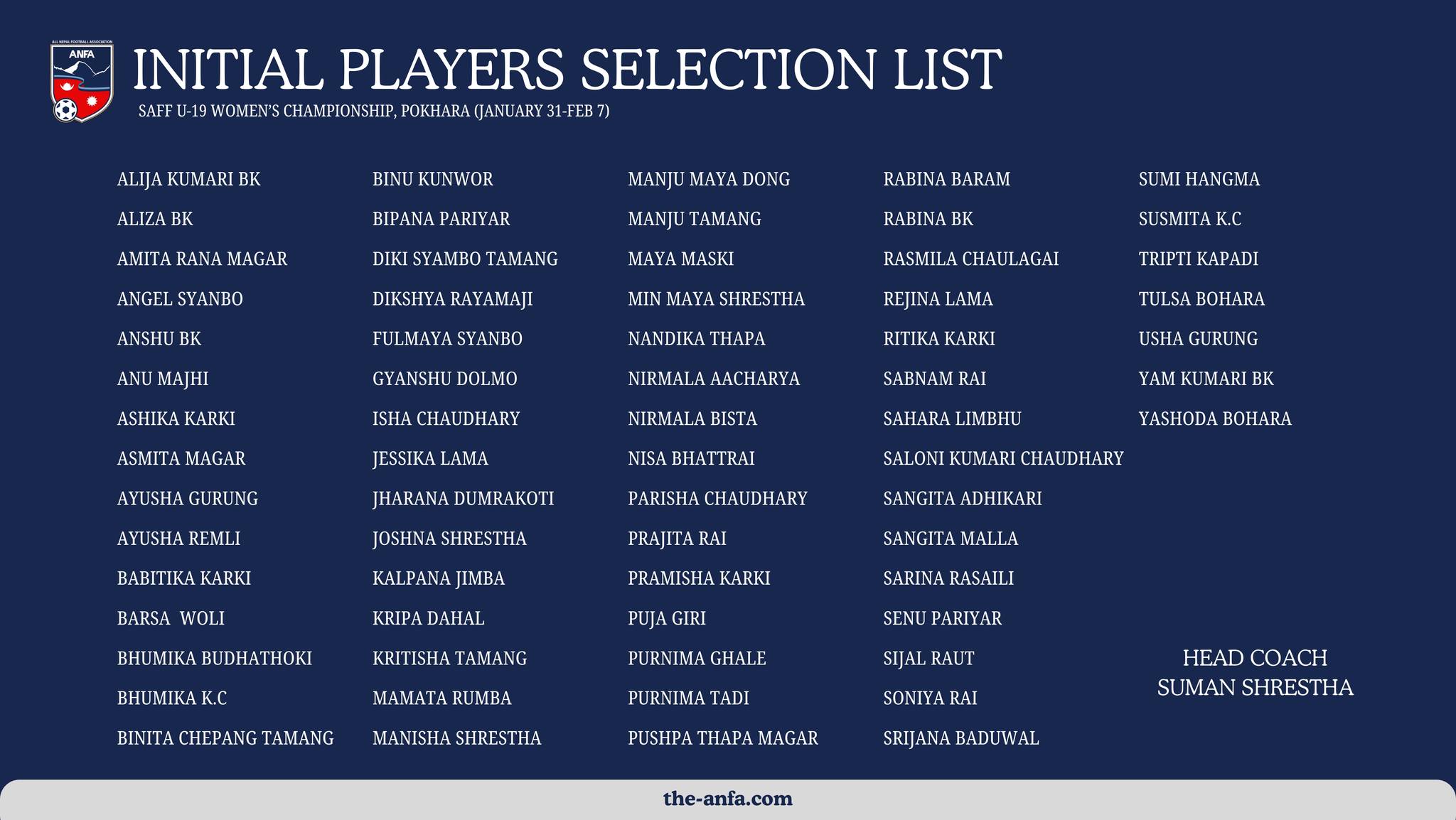 यू-१९ महिला टोलीको प्रशिक्षणका लागि ६७ खेलाडी