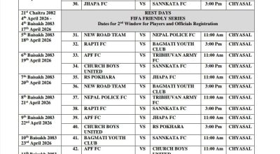 काठमाडौं : शहीद स्मारक एन्फा महिला लिग फुटबल प्रतियोगिता चैत्र ४ गतेदेखि सुरु हुने भएको छ। अखिल नेपाल फुटबल संघले सार्वजनिक गरेको खेल तालिकाअनुसार प्रतियोगिता ललितपुरको च्यासल रंगशालामा आयोजना हुनेछ। न्यु रोड टिम, त्रिभुवन आर्मी एफ सी , बागमती युथ क्लव, नेपाल पुलिस क्लब , राप्ती एफ सी , ए पी एफ, चर्च बोयज युनाईटेड, आर एस पोखरा , झापा एफ सी र संकटा एफ सी १० टोली सहभागी हुने प्रतियोगितामा टिमहरूबीच राउण्ड रोबिन लिग प्रणालीका आधारमा प्रतिस्पर्धा हुनेछ। प्रतियोगिताका खेलहरू च्यासल रंगशालामै सञ्चालन गरिने एन्फाले जनाएको छ। पछिल्लो पटक एन्फा महिला लिग सन् २०२४ को सेप्टेम्बरदेखि २०२५ को जनवरीसम्म सञ्चालन भएको थियो। पछिल्लो संस्करण फाइनलमा एपीएफ फुटबल क्लबले नेपाल पुलिस क्लबलाई ४-० ले पराजित गर्दै एन्फा महिला लिगको उपाधि जितेको थियो । त्यसपछि करिब एक वर्षपछि महिला लिग पुनः आयोजना हुन लागेको हो। महिला फुटबलको प्रमुख घरेलु प्रतियोगिताका रूपमा रहेको यो लिगले नेपाली महिला खेलाडीलाई प्रतिस्पर्धात्मक अनुभव प्रदान गर्ने अपेक्षा गरिएको छ।