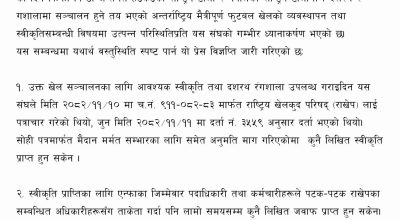 राखेपले भने रंगशाला प्रयोगका लागि आधिकारिक पत्रमार्फत स्वीकृति दिइसकेको र सुविधा उपलब्ध गराउने प्रक्रिया अघि बढाइएको बताएको छ।